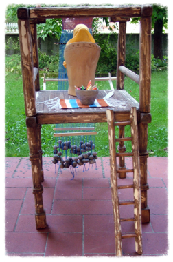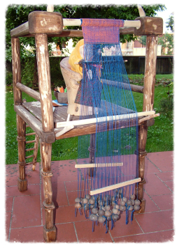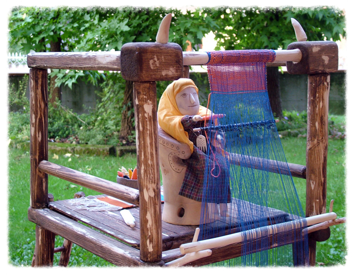 Questo modello di telaio di tipo etrusco è stato realizzato cercando di imitare la raffigurazione del telaio che compare sul Tintinnabulo in lamina bronzea ritrovato nel 1875 nella tomba n.5 ("tomba degli ori") della necropoli villanoviana dell'Arsenale Militare di Bologna (seconda metà VII secolo a.C.). Alto circa un metro è stato realizzato per il museo archeologico di Milano.